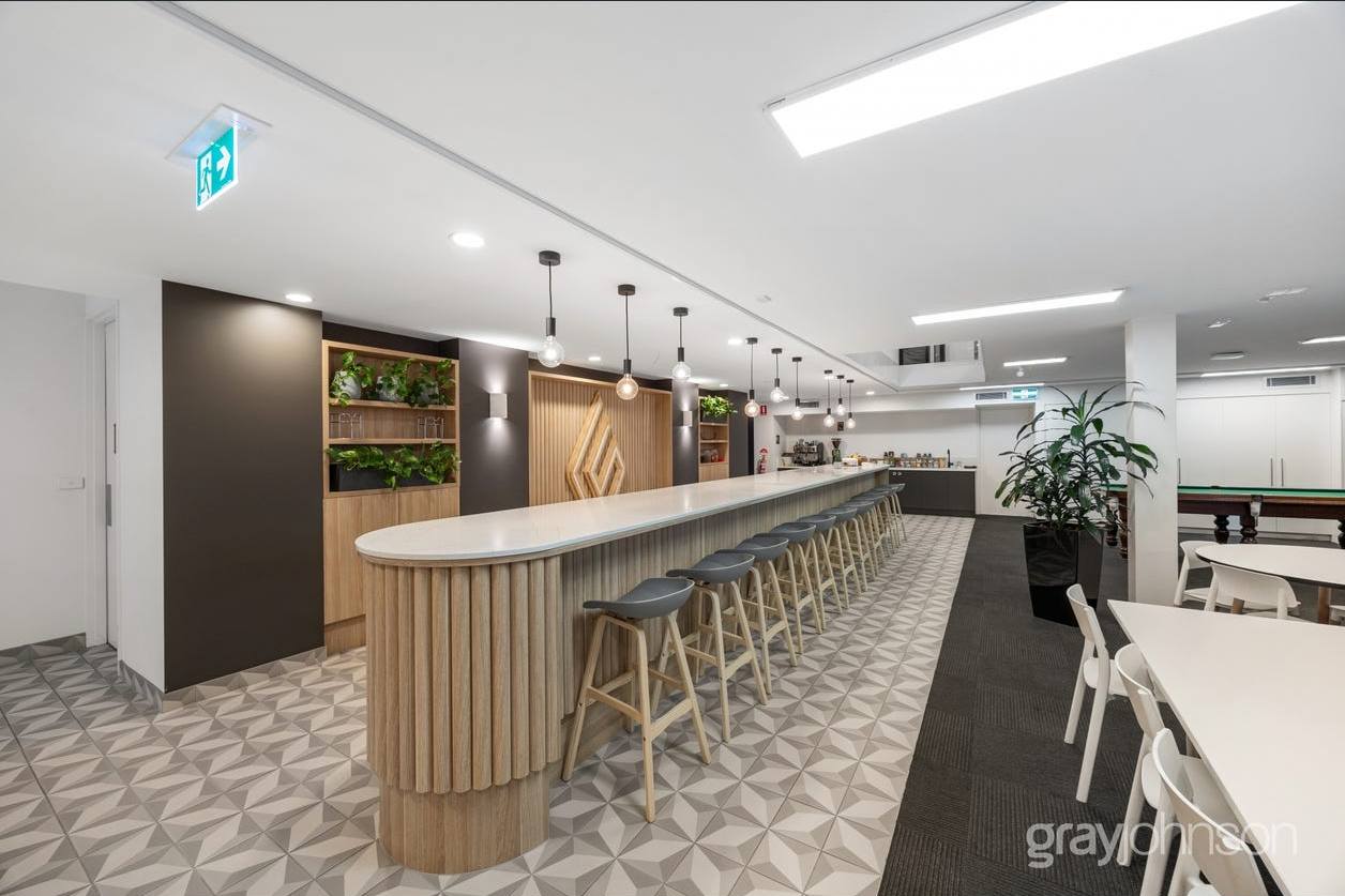 With a lofty entrance, polished concrete floors and exposed brick walls, this is an inspiring space that will enrich the performance of your team and make your workplace a destination for them and clients alike. Modern amenities include a well-appointed kitchen/breakout area, end of trip facilities and on-site secure car parking accessed from Market Street at the rear.