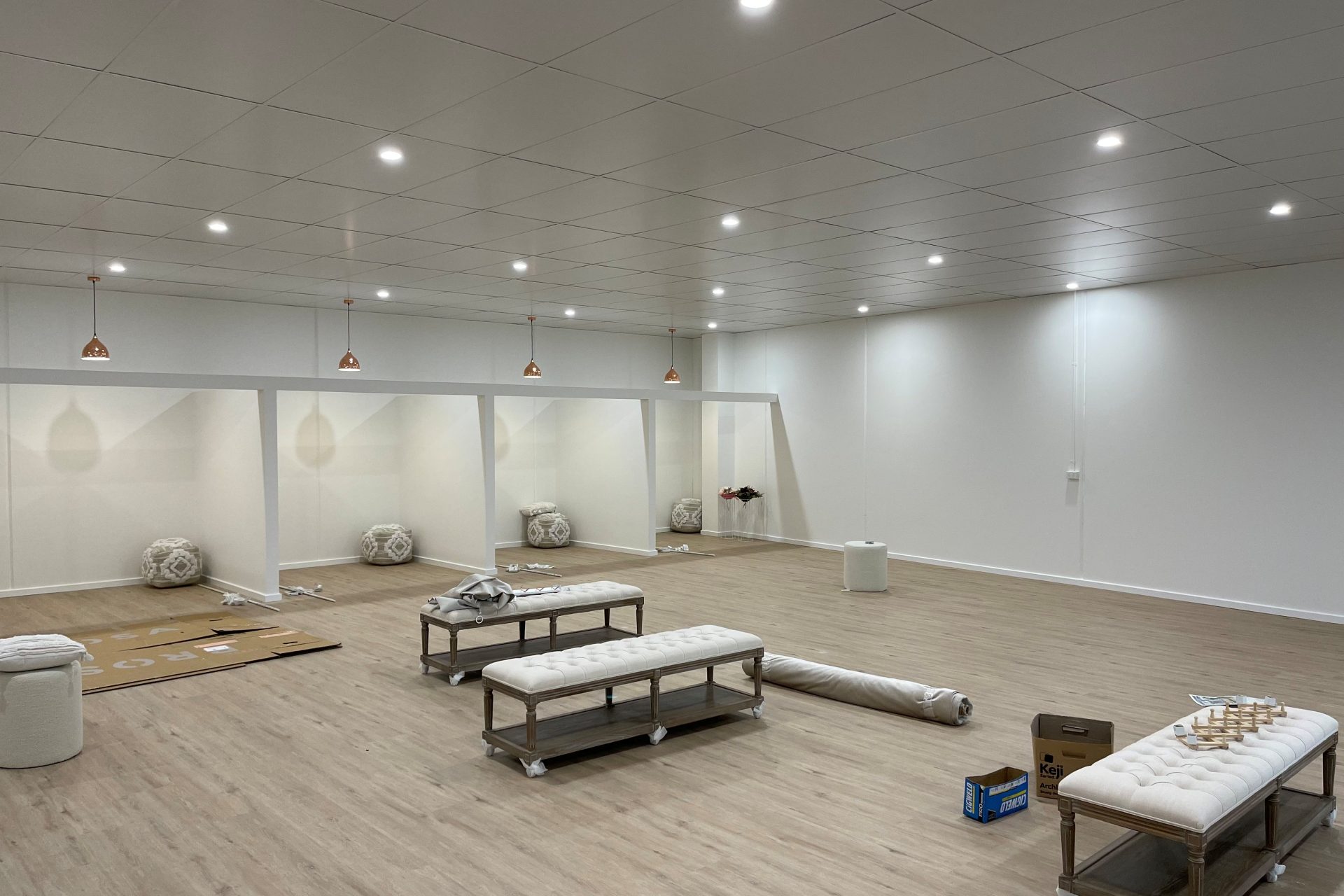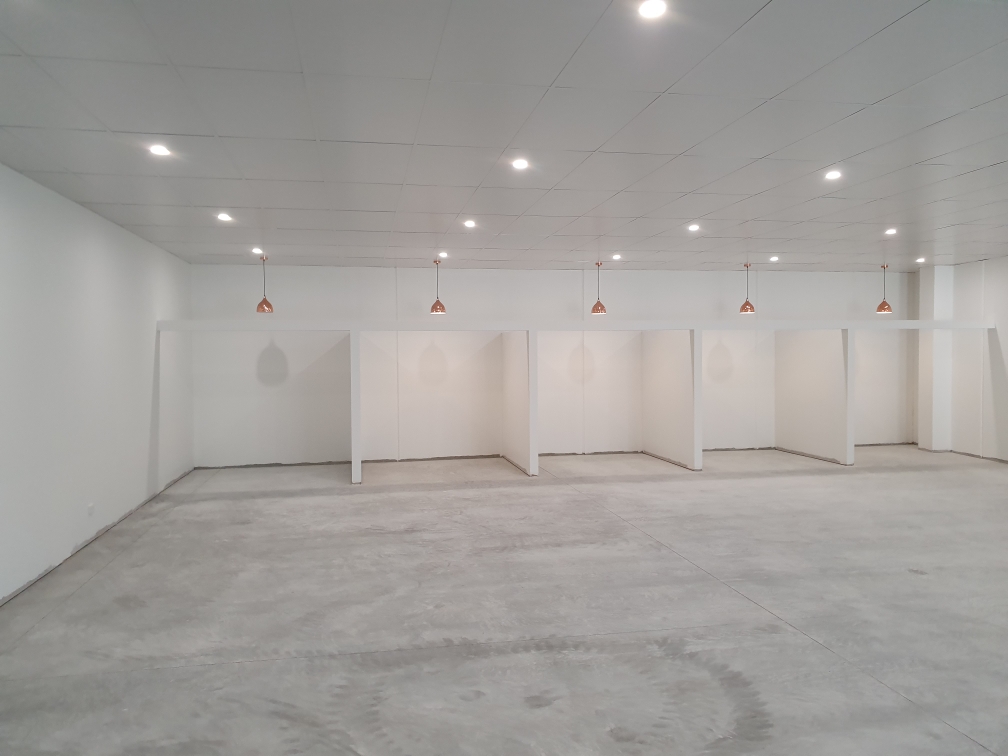 The high-clearance warehouse space, with container height electrically operated roller shutter door access, currently consists of showroom and warehouse. Modern first-floor office featuring air conditioning.